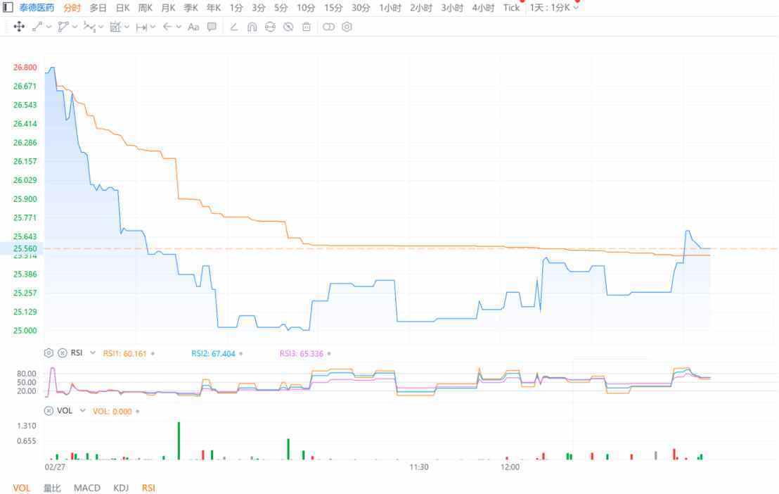 年度收入与利润齐升,泰德医药自然在当日赢得二级市场的积极反馈。智通财经APP观察到,公司股价在开盘后便迅速走高,开盘一小时内便冲至全天股价最高点27港元,最大涨幅达到6.72%。之后公司股价虽有波动但始终维持在当日股价均线以上,最终收涨5.85%。