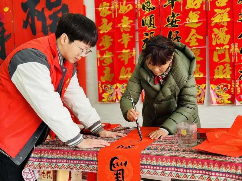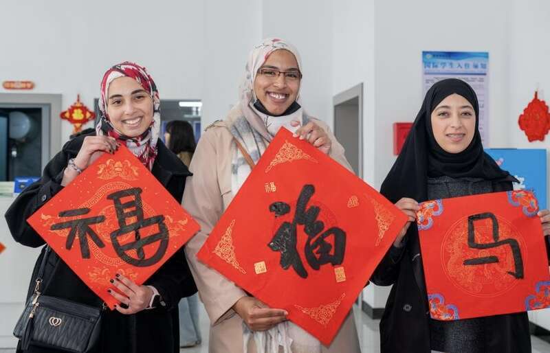 杭州市上城区皋城村孝廉广场红纸铺开,墨香浮起。留学生代表们屏息握笔,一笔一画地把“福”字写在红纸上。有的留学生举起“福”对着阳光端详,有的留学生把“福”字拍照发给远方的家人。中国民歌的调子从留学生代表嘴里唱出来,节奏有些变,不变的是真诚。和着非洲舞的鼓点,村民和小孩子跳起了舞蹈。